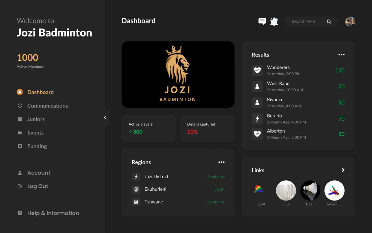 At Game Theory, we provide innovative consulting services designed to streamline the operations of sports federations and bodies. Our state-of-the-art management dashboard, as showcased with Jozi Badminton, offers comprehensive solutions to help you manage your organisation effectively.